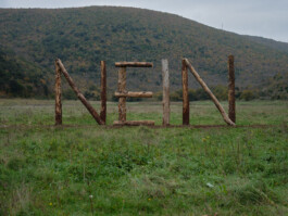 In https://havewedefeatedtechfascism.fail, a monumental “NO” interrupts the Raša Valley landscape. Built from tree trunks sourced from nearby forests, the letters act as a live ticker of the climate crisis, obstructing the view of a rapidly changing environment.